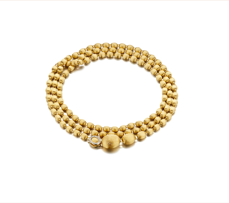 Ich vergleiche ein gutes Schmuckstück gerne mit Kaschmir. Wieso? Weil Kaschmir etwas ist, das man in erster Linie aufgrund des Gefühls, das es einem gibt, trägt. Es ist eine intime Wahl, ein Kuschelstück, das man sich selbst schenkt und mit dem man sich wohlfühlt. Für mich sollte ein gutes Schmuckstück genau das Gleiche sein. Deshalb sind alle meine Schmuckstücke weich wie Seide (dank der handgefertigten Gravur) und leicht. Leichtigkeit ist ein wesentliches Merkmal meiner Kollektionen. Ich möchte, dass die Frauen vergessen, dass sie sie überhaupt tragen!Und schließlich muss ein gutes Schmuckstück wandelbar sein und sich an die Besitzerin anpassen. Deshalb versuche ich immer, all meinen Kreationen eine große Vielseitigkeit zu tragen. Nehmen wir beispielsweise Ivy. Ivy ist eine Kette aus Goldperlen, die auf so viele verschiedene Arten interpretiert werden kann: in der Chanel-, Lariat- oder auch der Choker-Version. Die Möglichkeiten dieses Schmuckstücks sind endlos und seine Leichtigkeit macht es zum perfekten Begleiter für jede Tageszeit.