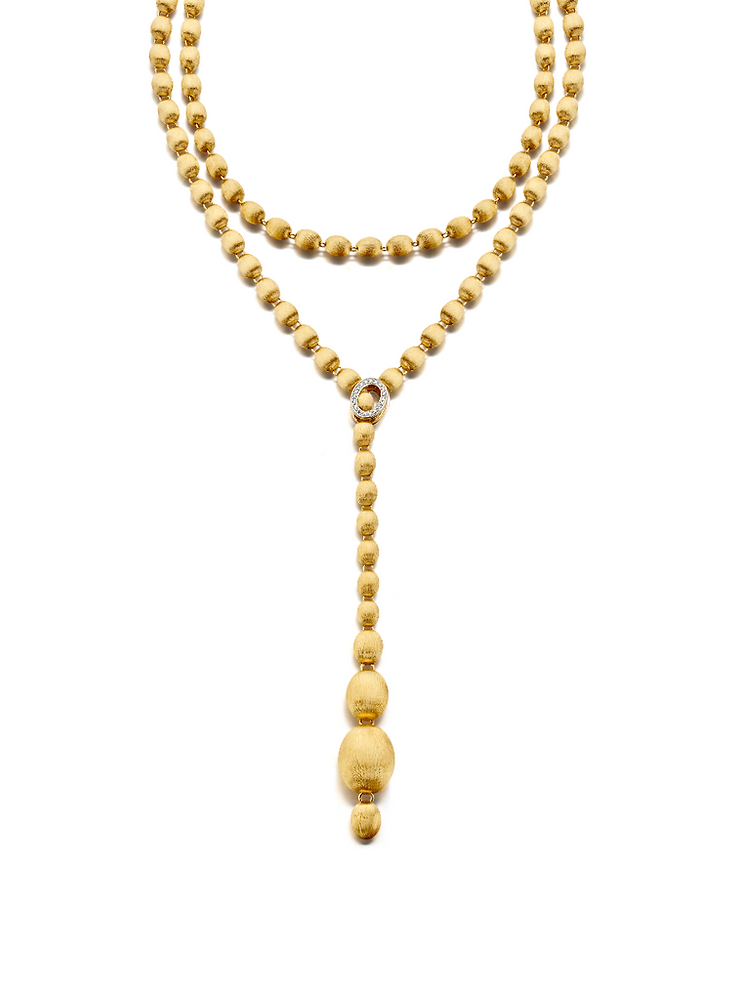 Seele hat sich nie verändert. Nach und nach wurde diese Perle – die wir von Hand mit der alten Technik des Stichelns gravieren – sehr bemerkenswert und ist heute der Protagonist unserer wichtigsten und ikonischsten Stücke und findet sich zum Beispiel in der Ivy- und Soffione-Kette oder den Ciliegine-Ohrringen breiter.