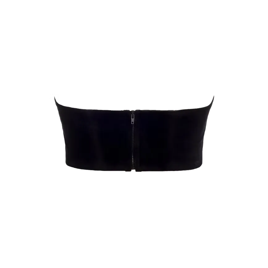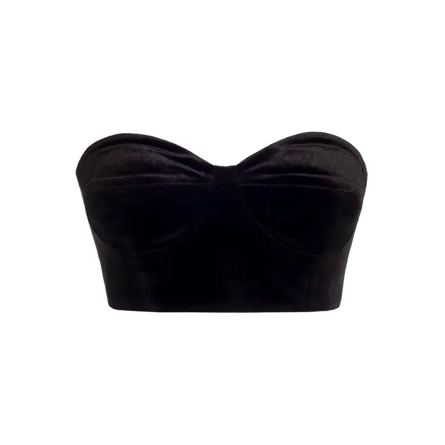 Das sexy Bustier aus Samt in Schwarz betont gekonnt dein Dekolleté und verleiht dir einen eleganten, femininen Look. Die luxuriöse Textur und das stilvolle Design machen dieses Bustier zu einem echten Hingucker unter einem Jackett oder solo.