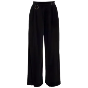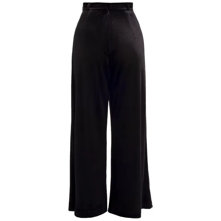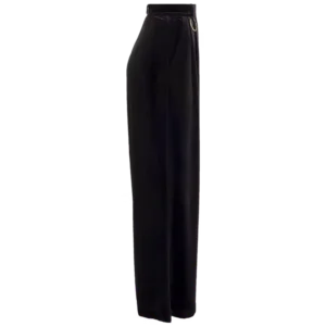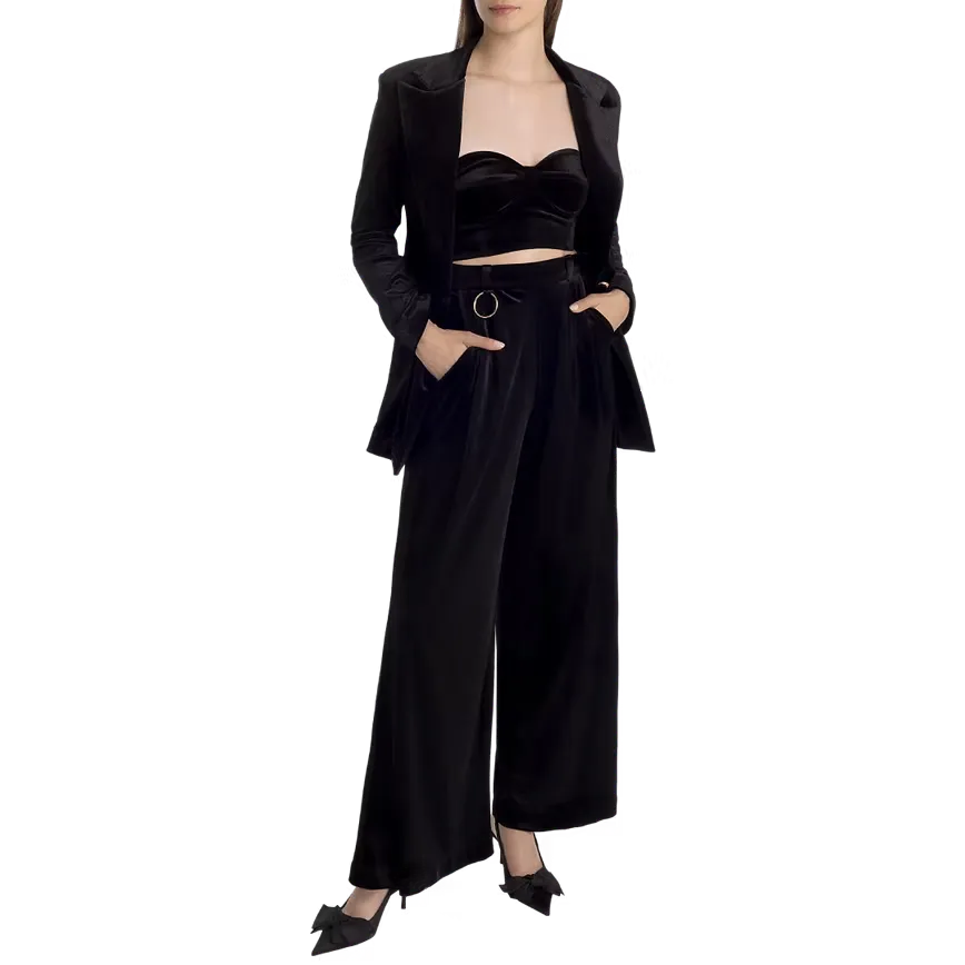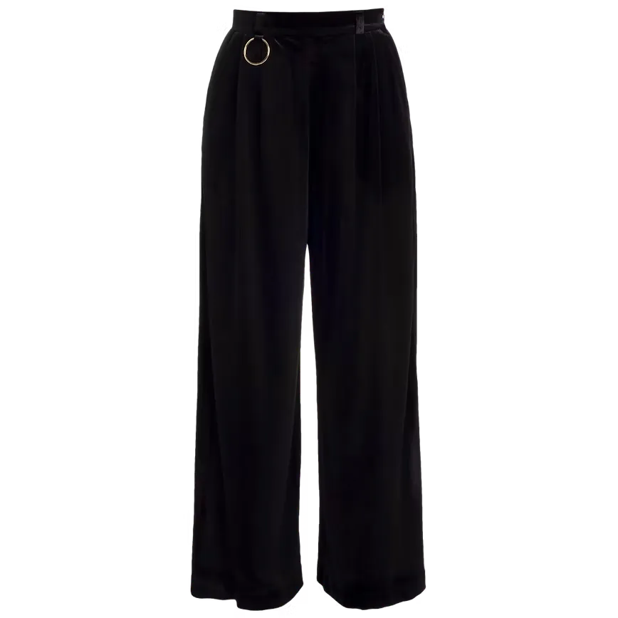 Diese Anzughose in schwarzem Samt kombiniert trendiges Design mit hochwertigen Materialien und sorgt durch den goldenen Ring für einen auffälligen, stilvollen Akzent.