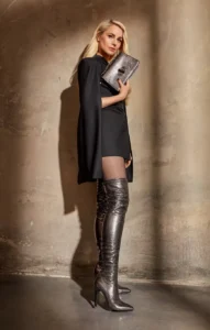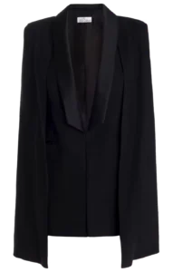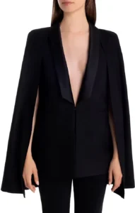 Das Smoking-Jackett mit Cape kombiniert klassische Eleganz mit einem modernen Twist und sorgt für einen beeindruckenden Auftritt. Das Cape verleiht dem Jackett eine dramatische Note und macht es zu einem einzigartigen Statement-Piece für besondere Anlässe. Ideal als Solo-Piece oder als lässiger Überwurf für die Oper.