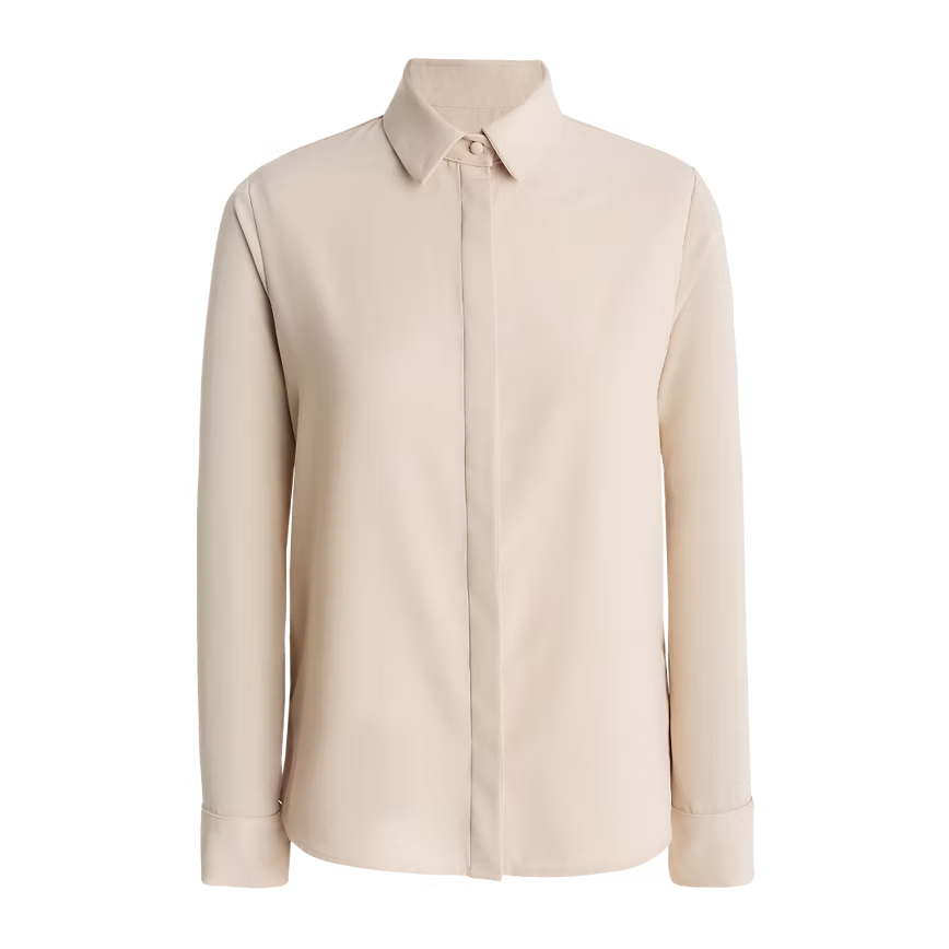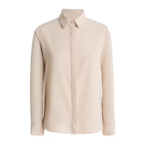 Unsere leicht taillierte Bluse in Nude besticht durch ihre schlichte Eleganz und den dezenten Glanz des hochwertigen Materials. Sie ist vielseitig kombinierbar und verleiht jedem Outfit eine edle Note, perfekt für sowohl formelle als auch lässige Anlässe.