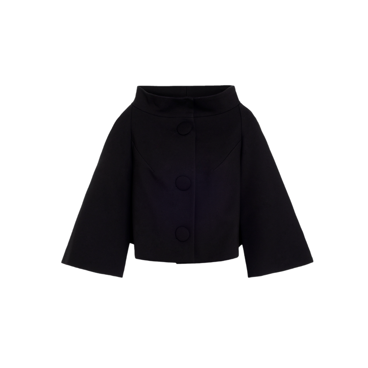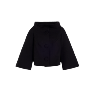 Diese Jacke macht kurzen Prozess. Den Anblick der Taille stört kein Zentimeter zuviel, der Kragen lässt Luft zum Atmen und Raum zum Wegducken, wenn’s mal stürmisch hergehen sollte. Und in den Trompetenärmeln lässt sich so manche Pistole verbergen. Ein hinreißendes Modell, das die Eleganz der 1960er Jahre auferstehen lässt.