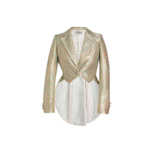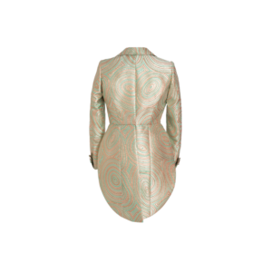 Die Dietrich wusste es zuerst: Selbstbewusste Damen beweisen auch im Frack untrüglichen Geschmack. So auch in diesem anbetungswürdigen Exponat. Scharfe Konturen, einer Herrin gebührend, sind das eine. Feinste Texturen, dank schillerndem Seidenbrokat, das andere. In der Synopsis: ein prunkvoller Auftakt für eine glamouröse Nacht.