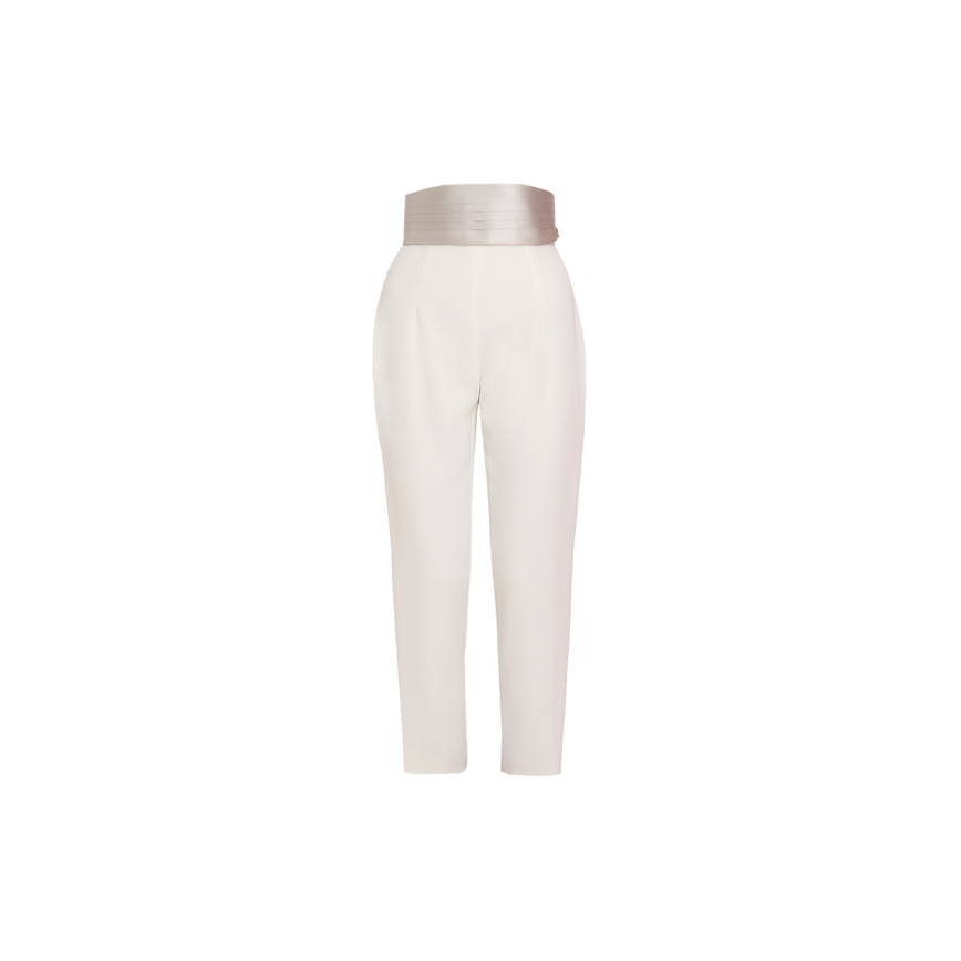 Mon dieu, wie skandalös! Mit Marlene Dietrich hatte in den 1930ern erstmals im Film eine Frau die Hosen an. Der Bund sitzt hoch und verboten eng an der Taille, die Beine nehmen sich viel Freiheit heraus. Diese Dietrich Hose in strahlendem Weiß gehört einfach in die Garderobe jeder emanzipierten Frau von Welt – ein Must-have, das durch alle To-dos des Tages und der Nacht trägt.