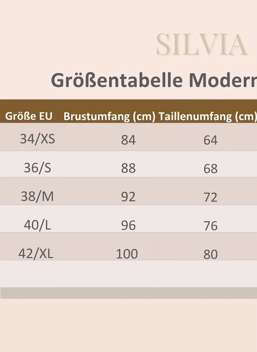 Jedes Kleidungsstück wird individuell auf Ihre Bestellung gefertigt, daher kann es zu Lieferzeiten von bis zu zwei Wochen kommen. Verzögert sich die Lieferung um mehr als 30 Tage nach Übermittlung Ihrer Bestellung, haben Sie das Recht, sich vom Vertrag zu lösen. In diesem Fall ist auch Silvia Schneider berechtigt, vom Vertrag zurückzutreten, geleistete Zahlungen werden unverzüglich rückerstattet.