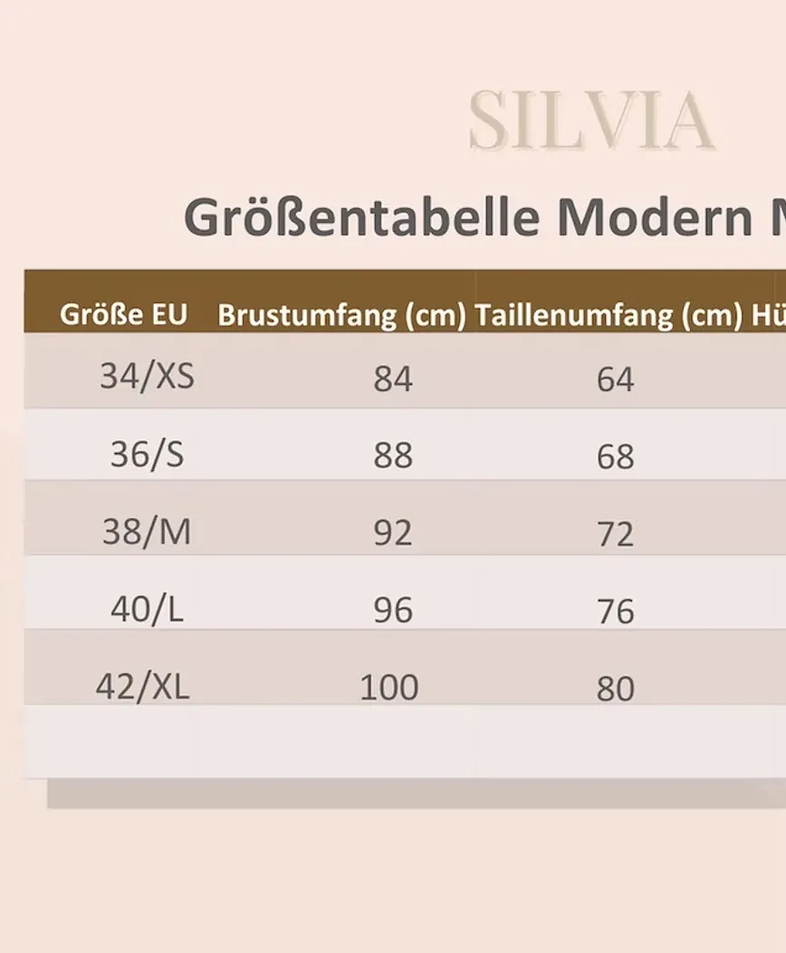 Jedes Kleidungsstück wird individuell auf Ihre Bestellung gefertigt, daher kann es zu Lieferzeiten von bis zu zwei Wochen kommen. Verzögert sich die Lieferung um mehr als 30 Tage nach Übermittlung Ihrer Bestellung, haben Sie das Recht, sich vom Vertrag zu lösen. In diesem Fall ist auch Silvia Schneider berechtigt, vom Vertrag zurückzutreten, geleistete Zahlungen werden unverzüglich rückerstattet.