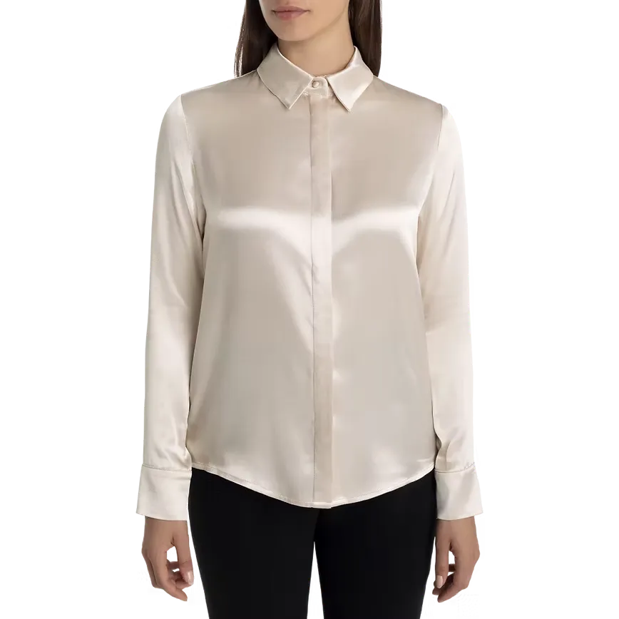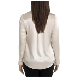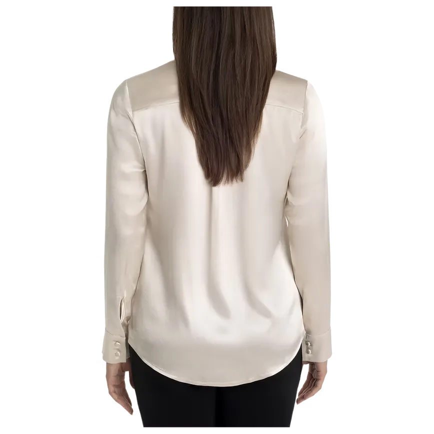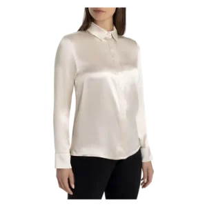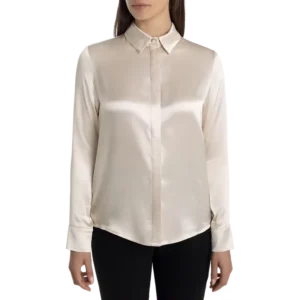 Diese leicht taillierte Satinbluse in zartem Nude-Ton vereint zeitlose Eleganz mit modernem Stil. Der fließende Stoff schmiegt sich sanft an die Haut und verleiht jedem Outfit eine edle Note. Die sanfte Taillierung betont die Figur auf dezente Weise und sorgt für eine feminine Silhouette. Perfekt für besondere Anlässe oder als luxuriöses Highlight im Alltag – diese Bluse ist ein Must-have für stilbewusste Frauen. Kombinieren Sie sie mühelos mit eleganten Hosen oder Röcken für einen makellosen Auftritt.