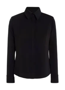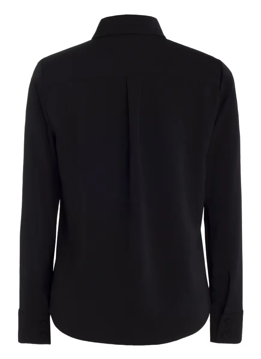 Unsere leicht taillierte Bluse in Schwarz besticht durch ihre schlichte Eleganz und den dezenten Glanz des hochwertigen Materials. Sie ist vielseitig kombinierbar und verleiht jedem Outfit eine edle Note, perfekt für sowohl formelle als auch lässige Anlässe.