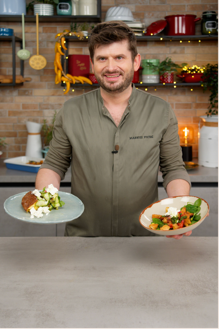 Ich allerdings brauche “unseren geliebten Fuxi”, wie ihn mein Team liebevoll nennt. Er schult mich für jede Sendung, verbessert meine Handgriffe und macht mich in der Küche schneller, professioneller und gelehriger. Er ist selbst Unternehmer, Foodproduzent, Private-Caterer und einer der kreativsten Köche unseres Landes. Versäumen Sie nicht wenn er sein Wissen mit unseren Sehern teilt. Es ist ein Genuss ihm bei der Arbeit zuzusehen und zu erfahren mit welcher Leichtigkeit aus tatsächlich allem in der Küche etwas gemacht werden kann. Alles was rumliegt und fort muss…daraus zaubert unser Fuxi Köstliches. Danke, Fuxi!
