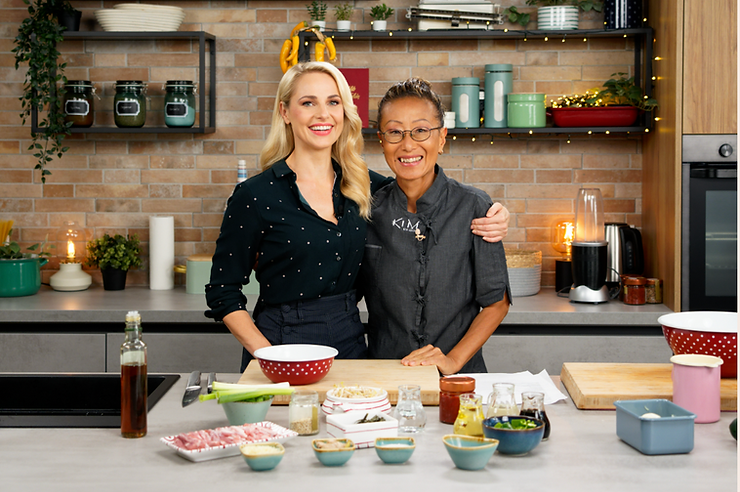 Ähnlich ausgelassen geht es zu, wenn Starköchin Sohyi Kim in unserer Studioküche das Ruder übernimmt. Kim kocht…und das tut sie mit Leib und Seele. Da wird gesungen, getanzt und gescherzt. Ganz nebenbei gibt es auch immer koreanisch Sprachunterricht für mich und Nachhilfe im Essen mit Stäbchen. Sohyi Kim ist mittlerweile in ihrer Heimat ein Superstar. Trotzdem gibt sie sich bodenständig. Unser Team liebt es wenn sie nach Drehschluss für alle nochmal den Kochlöffel schwingt und eine Riesenpfanne Bibimbap zaubert.